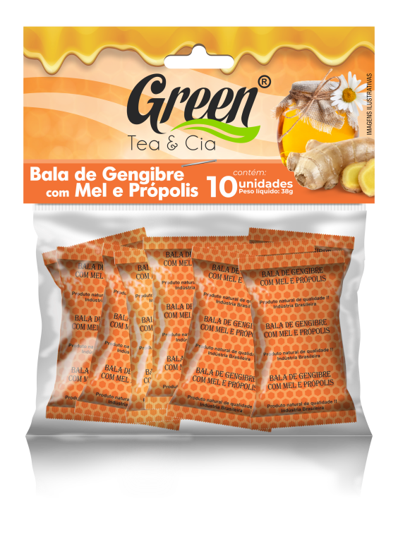 BALA DE GENGIBRE,MEL & PROPOLIS SACHES 10UND GREEN TEA & CIA.