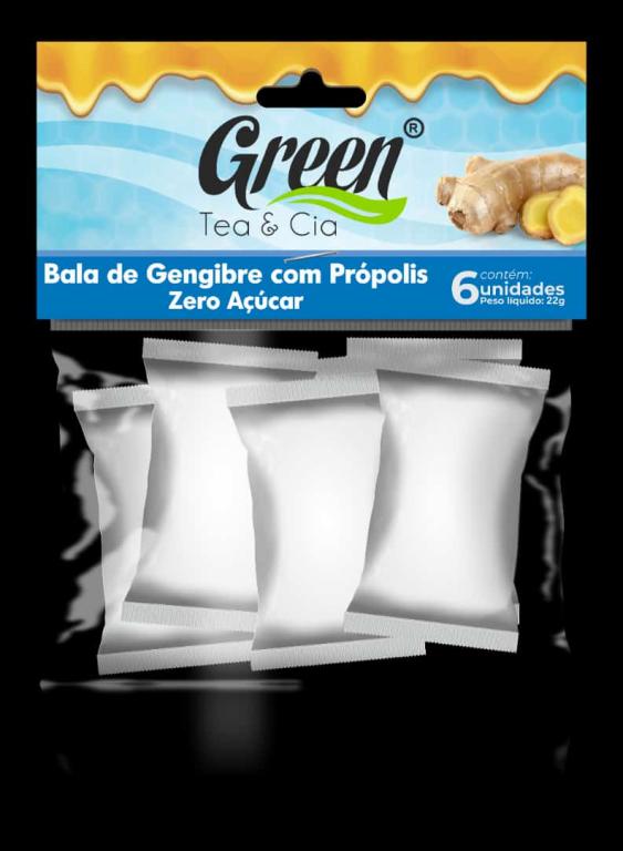 BALA DE GENGIBRE C/PROPOLIS ZERO ACUCAR SACHES 06UND GREEN TEA & CIA
